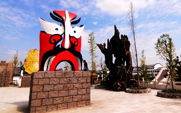 坐落于五千年文化長(zhǎng)廊的京劇臉譜造型,其含基座高4米,寬1米6,并沒(méi)有根據(jù)某位人物造型打造,而出自于五千年文博園自己的創(chuàng)意,以紅白兩色為主色,大膽的運(yùn)用寫真、夸張、抽象的藝術(shù)形式,結(jié)合獨(dú)創(chuàng)的手工藝制作而成。其色彩鮮明、立體感強(qiáng)、線條柔美,打破了固定譜式的束縛,完全從一個(gè)全新的角度理解和認(rèn)識(shí)臉譜藝術(shù),試圖從中探求一條臉譜在現(xiàn)代生活中的現(xiàn)實(shí)意義和藝術(shù)價(jià)值。