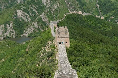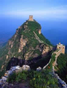 長(zhǎng)城上大小不同、形態(tài)各異的敵樓,恰到好處地建立在各個(gè)制高點(diǎn)上,威風(fēng)凜然,冷峻挺拔。整段長(zhǎng)城,完美和諧,氣勢(shì)磅礴,處處顯示出它的巧妙、奇特、雄偉和壯麗。再看看連綿不斷的燕山山脈奔涌而起,疊起無(wú)數(shù)的奇幻;看著遼闊的華北平原無(wú)邊無(wú)際,一直鋪向目不所及的天邊,在這博大奇異的景色中,令人不由浮想聯(lián)翩。