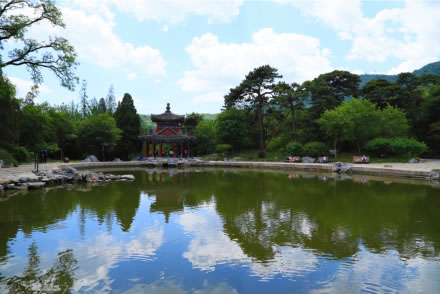 知松園位于南北主要游覽干道西側(cè),占地2公頃,是1987年新辟建的景區(qū)。景區(qū)內(nèi)一、二級古松柏100余株。在景區(qū)之東立寬1.5米,長2.5米,高5.5米巨石一塊,正面書直徑為0.8米的“知松園”三字,石背錄陳毅詩“大雪壓青松,青松挺且直,欲知松高節(jié),待到雪化時”。知松取意于《論語·子罕》“歲寒然后知松柏之后凋也”。景區(qū)內(nèi)有古松同琉璃塔形成借景,命名為“瓊松塔影”。