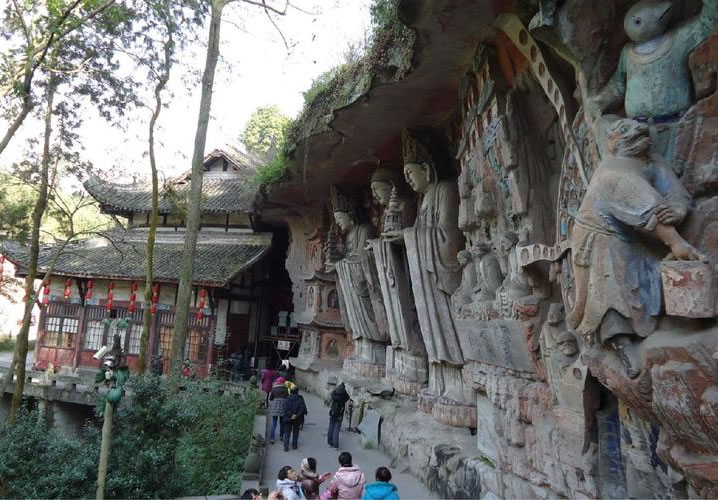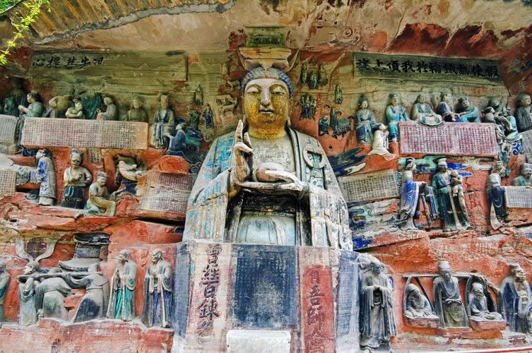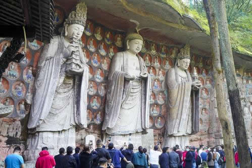 重慶市的大足石刻以其規(guī)模宏大、雕刻精美、題材多樣、內(nèi)涵豐富和保存完整而著稱于世。它集中國佛教、道教、儒家“三教”造像藝術的精華,以鮮明的民族化和生活化特色,成為中國石窟藝術中一顆璀璨的明珠。它以大量的實物形象和文字史料,從不同側(cè)面展示了九世紀末至十三世紀中葉中國石刻藝術的風格和民間宗教信仰的發(fā)展變化,對中國石刻藝術的創(chuàng)新與發(fā)展做出了重要貢獻,具有前代石窟不可替代的歷史、藝術和科學價值。許多歐洲人、尤其是法國人,對大足石刻寵愛倍加。