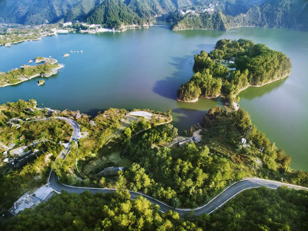 重慶黔江小南海國(guó)家地質(zhì)公園,位于重慶市黔江區(qū)小南海鎮(zhèn)南海村,重慶與湖北交界處,距黔江城北部30余千米。是一個(gè)融山、海、島、峽諸風(fēng)光于一體的高山淡水湮(堰)塞湖泊,也是中國(guó)國(guó)內(nèi)迄今保存最完整的一處古地震遺址。