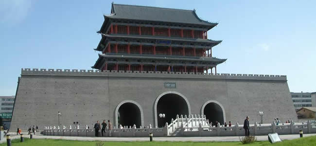 南城門又名昭武門,始建于隋朝,明代重修,原城樓為重檐歇山頂式建筑,造型古樸雄偉。據(jù)說,每當(dāng)天氣晴朗無風(fēng)的時候,夜晚登上城樓,可以清晰地聽到如細(xì)雨在瓦上淋漓的聲音,故有“夜雨打瓦”之稱,是涼州八景之一。