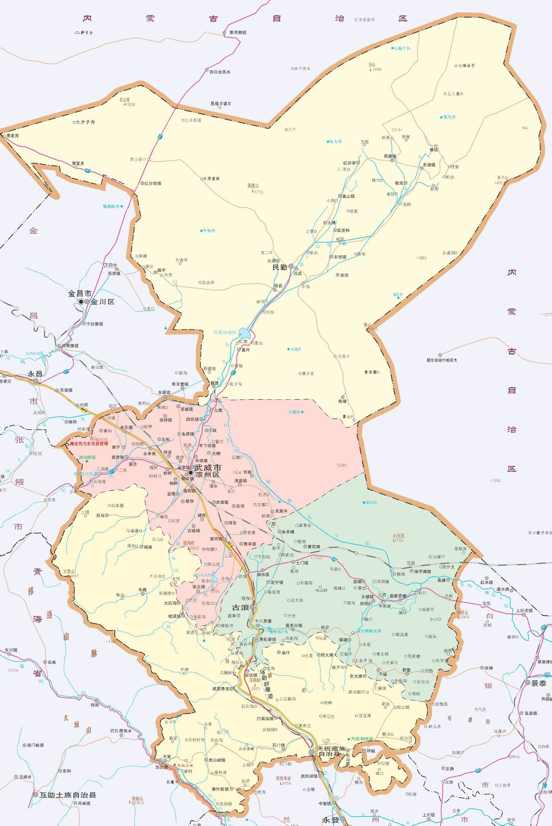 武威市轄1個區(qū)、2個縣、1個自治縣: