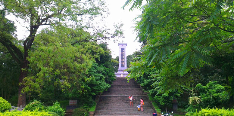 中越友誼公園總面積260畝。萋萋草木順著低矮的坡岡錯落地生長著。公園中心最高處矗立著“中越人民革命烈士紀(jì)念碑”。公園內(nèi)有1960年越南胡志明主席贈送樹種栽的兩棵友誼樹。公園南側(cè)小山上,有在解放路戰(zhàn)爭中英勇獻(xiàn)身的陳漢東等六位烈士墓。陳漢東原名黃木芬,1937年參加中國共產(chǎn)黨,1945年6月在防城縣那良抗日武裝起義領(lǐng)導(dǎo)人之一。任欽防華僑抗日游擊大隊(duì)黨代表兼參謀長,于1945年6月底同敵人的一次戰(zhàn)斗中英勇犧牲。1959年移葬于此,墓碑上刻有“陳漢東烈士合葬墓”。從公園入口處,順著林間的小徑往右側(cè)山丘走去,走百多米,一座高聳的紀(jì)念碑便立于眼前。紀(jì)念碑正背面分別用中越文字題寫“光榮的人民英雄永垂不朽”,碑座正背面也分別用中越文字鐫刻著在抗法援越戰(zhàn)上犧牲的中國英烈名字。1958年經(jīng)東興縣人民委員會與越南海寧省政府商定,為在1954年的援越解放斗爭中犧牲的中國軍人立這座紀(jì)念碑。中越人民友誼公園,正是為紀(jì)念這份用鮮血鑄成的戰(zhàn)斗而修建的。