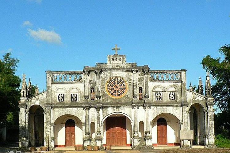 羅浮恒望天主教堂距離市中心約5公里,由法國傳教士建于1832年,歷史悠久。當(dāng)時的羅浮天主教堂屬北海教區(qū)。初建時教堂占地10000余平方米,設(shè)有教堂、鐘樓、育嬰室(收養(yǎng)棄嬰)、男校、仁愛堂、圣堂、織紡堂等。由于歷經(jīng)歲月的沖刷、歷次政治風(fēng)暴的滌蕩以及人口不斷增加的影響,如今的羅浮天主教堂只剩幾百米的范圍內(nèi)。羅浮天主教堂是東興所有的三個教堂中最為典型的法式建筑。教堂正面及兩側(cè)由十幾根柱子托起,形成大半框形的走廊。每根柱子之間都砌成拱形的門的形狀,相互承接。每根柱子的上方都修成如鐘樓的樣式,并努力地讓它接近天空。