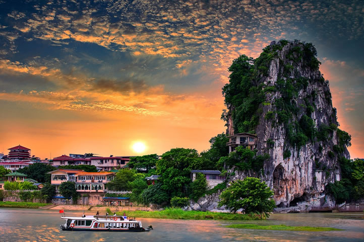虞山景區(qū)位于桂林城北,瀕臨漓江,因華夏始祖之一的虞帝(即舜帝)南巡曾到此地,使虞山而得名。景區(qū)內虞山、皇澤潭、韶音洞素有仙山、仙河、仙洞之名,其中“舜洞熏風”為桂林著名老八景之一。