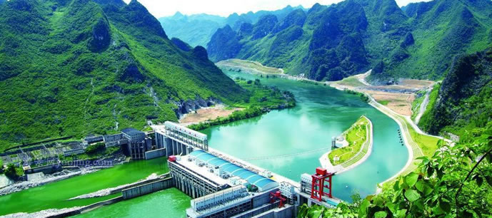 樂灘(惡灘)水電站庫區(qū)的紅水河源出于云南省沾益縣的南盤江,經(jīng)貴州流入廣西,是廣西以壯族為主體的少數(shù)民族的母親河、太陽河。紅水河是中國少有的水電資源。正在擴(kuò)建中的樂灘(惡灘)水電站預(yù)算投資39.7億元,裝機(jī)容量為60萬千瓦,年均發(fā)電量為35億千瓦時(shí),是紅水河上的十個(gè)梯級(jí)水電站之一。