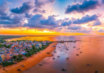 三娘灣沿岸月亮沙灘長(zhǎng)約1.5公里,掩映在欏麻防風(fēng)林中的海灘呈金黃色,松軟細(xì)膩;緊傍三娘灣的漁村里雞鳴犬吠,炊煙裊裊,讓人領(lǐng)略到與都市旅游迥然不同的野趣。