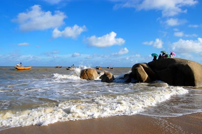 最富特色的是這里的海豚和奇石。海域內(nèi),常年活躍著數(shù)百頭五彩斑斕的中華白海豚,而且一年四季都能近距離觀看,每當(dāng)漁民出海捕魚或游人出海觀光時(shí),海豚常常追逐漁船、親漁夫、逗游客,或在海中嬉戲,構(gòu)成了一幅人、豚親密無間、和諧相處的美好畫面。這里的另一個(gè)特色是遍布各處的奇石,沙灘旁、淺海中奇石林立。