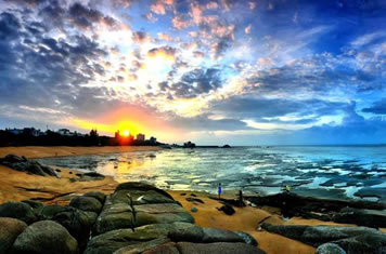 傍晚在松軟潔凈的沙灘上拾貝捉蝦,收獲一份意外的驚喜,享受自己辛勤勞動(dòng)的成果,不必?fù)?dān)心夕陽西下,在暮色蒼茫的漁村下榻,潔凈簡(jiǎn)樸的漁家旅店是濱海月色星光下最溫馨的家。