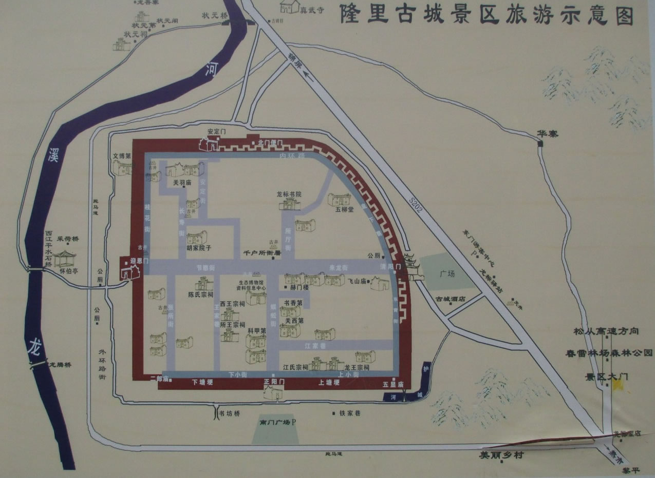 一日游:東門(mén)古城——龍標(biāo)書(shū)院——觀音堂——蜈蚣街——王氏宗祠——西門(mén)鼓樓——北門(mén)街——古城墻——陶家大院——東門(mén)鼓樓 |