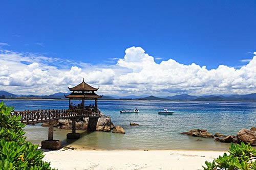 亞龍灣是海南省三亞市東郊的一處優(yōu)質(zhì)熱帶海濱風(fēng)景區(qū),沙灘平緩開闊,沙粒潔白細(xì)軟,海水清澈澄瑩,海底資源豐富,生長眾多原始熱帶植被,頗具熱帶海島風(fēng)情。海灣距離市中心區(qū)約10公里,以野豬島為中心,南有東洲島、西洲島,西面有東排、西排,可開展多種水上運(yùn)動。