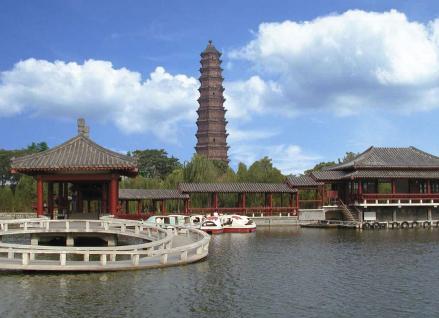 鐵塔公園位于開封古城的東北隅,占地面積51.24公頃,是中國100家名園之一,國家AAAA級景區(qū)。鐵塔位于鐵塔公園的東半部,是園內(nèi)重要的文物,也是主要的景點,建于公元1049年,是1961年我國首批公布的國家重點保護文物之一,素有“天下第一塔”的美稱。鐵塔高55.88米,八角十三層,因此地曾為開寶寺,有稱“開寶寺塔”,又因遍體通徹褐色琉璃磚,混似鐵鑄,從元代起民間稱其為"鐵塔"。建成九百多年來,歷經(jīng)戰(zhàn)火、水患、地震等災(zāi)害,仍巍然屹立。