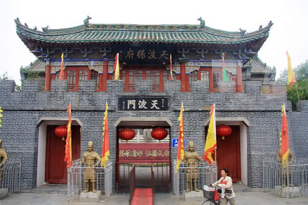天波楊府是北宋抗遼名將楊業(yè)的府邸,位于宋朝首都東京(今開封市)城內(nèi)西北隅,天波門的金水河旁,故名“天波楊府”。因楊業(yè)忠心報國,楊家將世代忠良,宋太宗趙光義愛其清正剛直,不善巧言諂媚的性格,敕在天波門的金水河邊建無佞府一座,賜金錢五百萬蓋“清風無佞天波滴水樓”,并親筆御書“天波楊府”匾額。為國家AAAA級景區(qū)。
