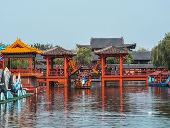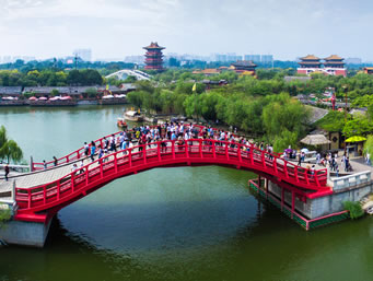 清明上河園是中國(guó)著名八朝古都河南開(kāi)封的一座大型歷史文化主題公園,占地600余畝,坐落在開(kāi)封城風(fēng)光秀麗的龍亭湖西岸。