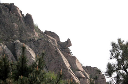 從遠(yuǎn)處山腰眺望一線天,這里就是著名的八戒石.很像一個(gè)戴著僧帽的老豬在綠樹叢中呼呼大睡。一線天下面是花果山山名摩崖石刻,游客都愛在這里留影,青山紅字,非常壯麗。這里還有天然碑、硯石等景觀。沿小路前進(jìn)可至墨香小徑,里面有百余位當(dāng)代書法名家的作品刻在天然石塊上;還可至怪石園,看千奇百怪與《西游記》有關(guān)的象形石!吧瘛弊滞踉跂|部禿龍溝下,是刻在山體上的懷素草書“神”字,長(zhǎng)39.4米、寬15.8米,為世界上最大的單體漢字,1996年被載入吉尼斯世界紀(jì)錄。 登上玉女峰是花果山之游的高潮,有緣的人在這里可看到云臺(tái)山兩個(gè)最為精彩的景致。一個(gè)是在迎曙亭看海上日出;另一個(gè)是看云臺(tái)鋪海,白云翻滾好像海水揚(yáng)波,露出來(lái)的峰頂就像大海里的蓬萊仙島,群山俯伏,阡陌縱橫,此情此景令人有飄飄欲仙的感覺。