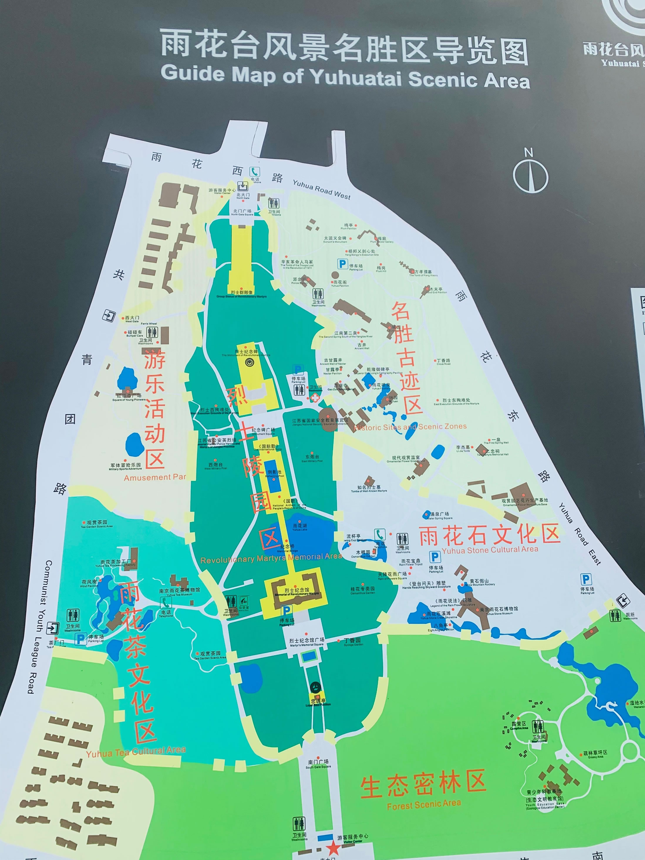 雨花臺風(fēng)景名勝區(qū)由名勝古跡區(qū)、烈士陵園區(qū)、雨花石文化區(qū)、雨花茶文化區(qū)、游樂活動區(qū)和生態(tài)密林區(qū)六大功能區(qū)組成。復(fù)建了雨花閣、二忠祠、木末亭、乾隆御碑亭、方孝孺墓、辛亥革命人馬冢、甘露井、曦園、怡苑、梅崗等20余處名勝古跡和樓臺亭閣館。