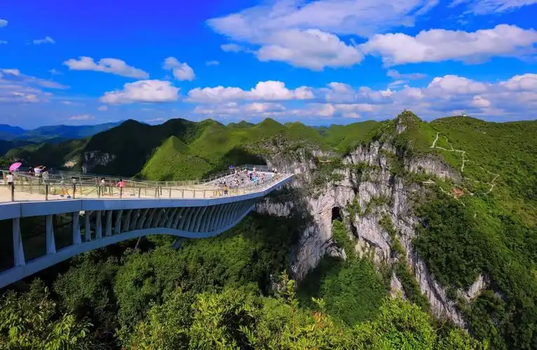 - 云海天舟:世界最長懸挑玻璃觀景平臺,懸空258米,晴天可見彩虹橫跨天坑,陰天云霧繚繞似仙境。