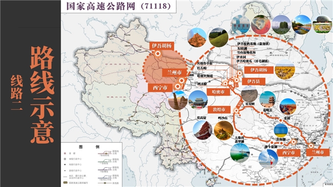 線路二“初遇新疆”線路則以“千年敦煌·萬(wàn)年胡楊”——甘青新極致風(fēng)光探索之旅為主題,該路線亮點(diǎn)為敦煌、青海湖、伊吾胡楊、自然風(fēng)景觀光和民族文化體驗(yàn)等。途經(jīng)蘭州、西寧、伊吾,跨越甘肅、青海、新疆三省。全程路線大約3,022.3公里