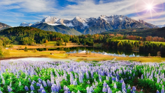 4.雪山濕地花海(雪山、濕地、花海,每一個(gè)景在這里都能看到。蜿蜒的溪流清澈見(jiàn)底,橫穿公園,澆灌著大片的牧草,木質(zhì)籬笆圍繞著牛群、馬群。溪流在有些地方會(huì)穿過(guò)木質(zhì)籬笆在外部流淌再流入濕地,使得人們可以近距離觸摸冰涼的溪流。)