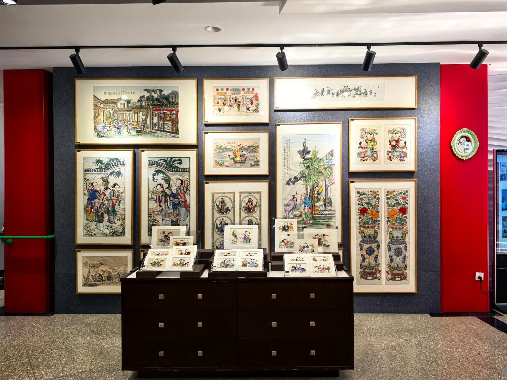 孩童提著魚燈玩耍、婦人抱著一大碗元宵、畫中人敲鑼打鼓……元宵節(jié)期間,走進(jìn)天津古文化街上改造一新的楊柳青畫店,融入經(jīng)典年畫元素的冰箱貼、紙雕、擺件等文創(chuàng)產(chǎn)品琳瑯滿目,吸引不少顧客駐足觀賞。