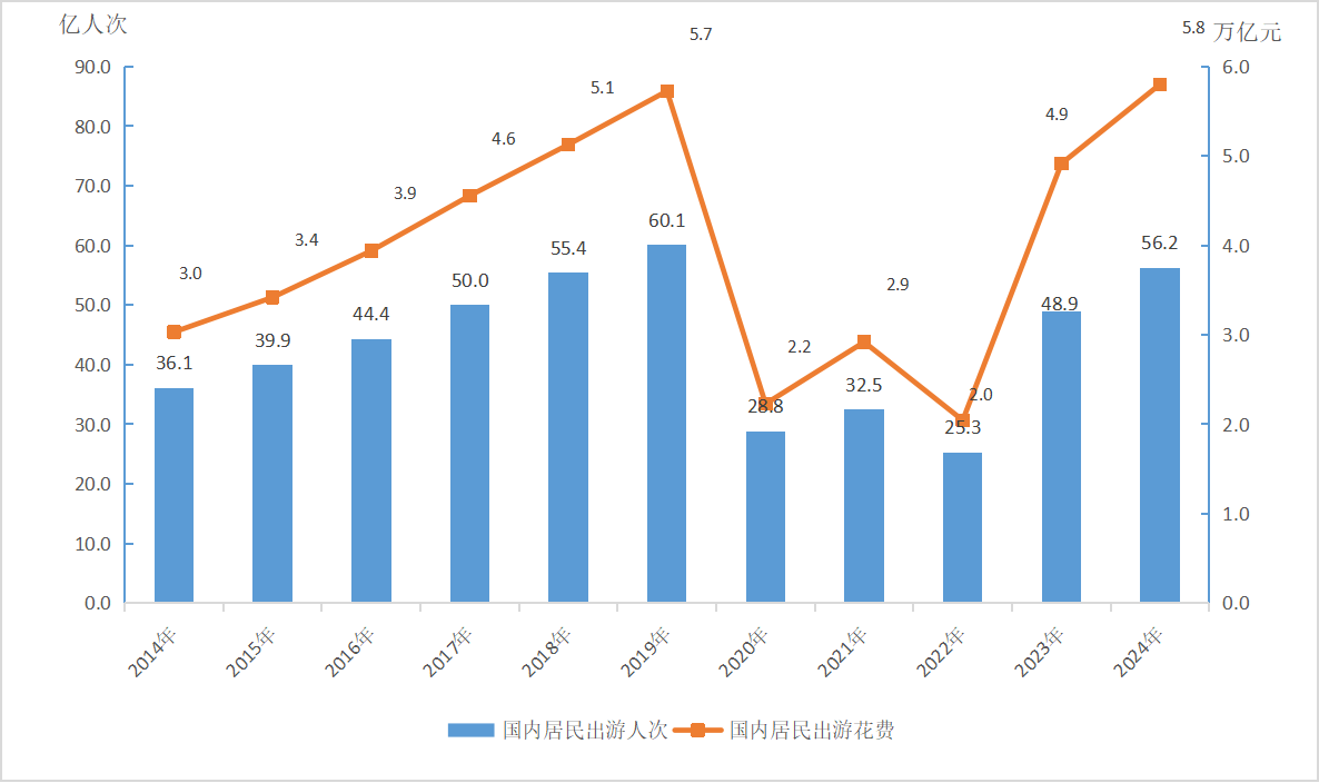 圖5:2014—2024年國內(nèi)旅游發(fā)展情況