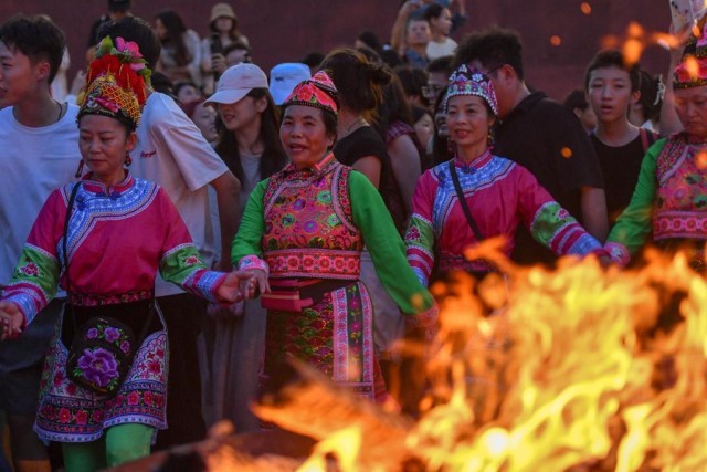 “不用懂專業(yè)舞步,跟著大家一起,怎么開心怎么跳!” 在大理州巍山縣拱辰樓廣場(chǎng),躍動(dòng)的篝火映紅了古老的城墻,來自西安的游客劉欣已融入當(dāng)?shù)貞c;鸢压(jié)的彝族打歌隊(duì)伍中。“打歌隊(duì)員帶領(lǐng)大家圍著篝火唱跳,簡(jiǎn)直太開心了!”她說。