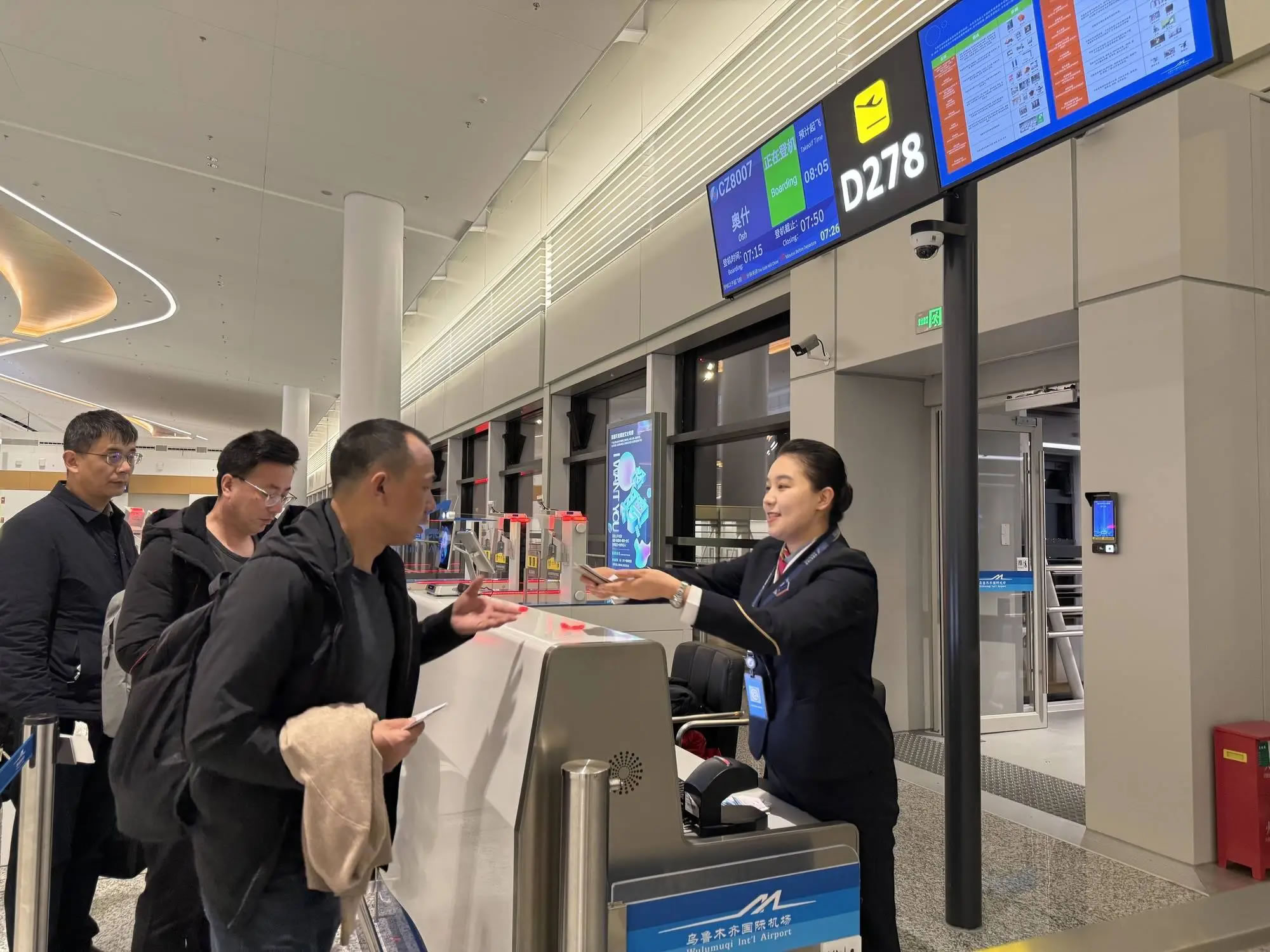 南航新疆分公司成立專項保障小組,圍繞航班調(diào)度、地面服務(wù)、機組籌備、通關(guān)協(xié)調(diào)等環(huán)節(jié)制定全流程預(yù)案。依托中吉雙向免簽政策紅利,南航在F島國際值機區(qū)開設(shè)復(fù)航專屬保障專柜,精選業(yè)務(wù)骨干全程負(fù)責(zé)證件核驗、行李規(guī)范、出境流程咨詢等服務(wù)。通過提前梳理旅客信息、預(yù)判出行需求,搭配多臺支持中、英、俄等58國語言實時互譯的智能翻譯設(shè)備,破解跨境溝通障礙,確保出入境流程、行李規(guī)定等信息傳遞零誤差,助力旅客快速通關(guān)。保障小組還從證件核對到登機引導(dǎo),全程跟進特殊旅客需求,提供全方位貼心服務(wù)。