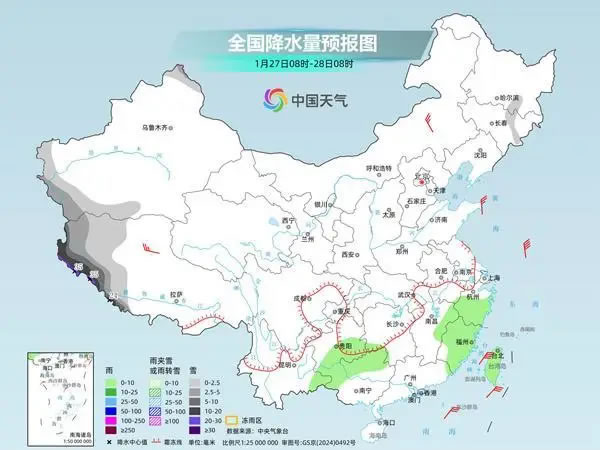 今明天(1月27日至28日),我國中東部地區(qū)降水日漸減少,西藏降雪將增多、增強(qiáng),局地或有特大暴雪,需注意防范。氣溫方面,未來幾天,我國大部氣溫多起伏,南方部分地區(qū)氣溫波動(dòng)明顯,公眾請適時(shí)調(diào)整著裝。