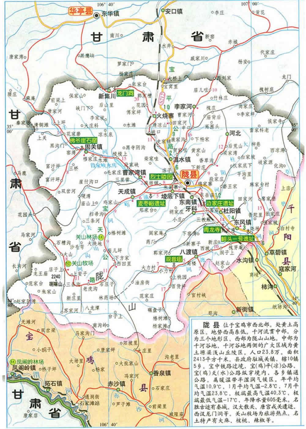 隴縣轄11個(gè)鎮(zhèn)、4個(gè)鄉(xiāng):