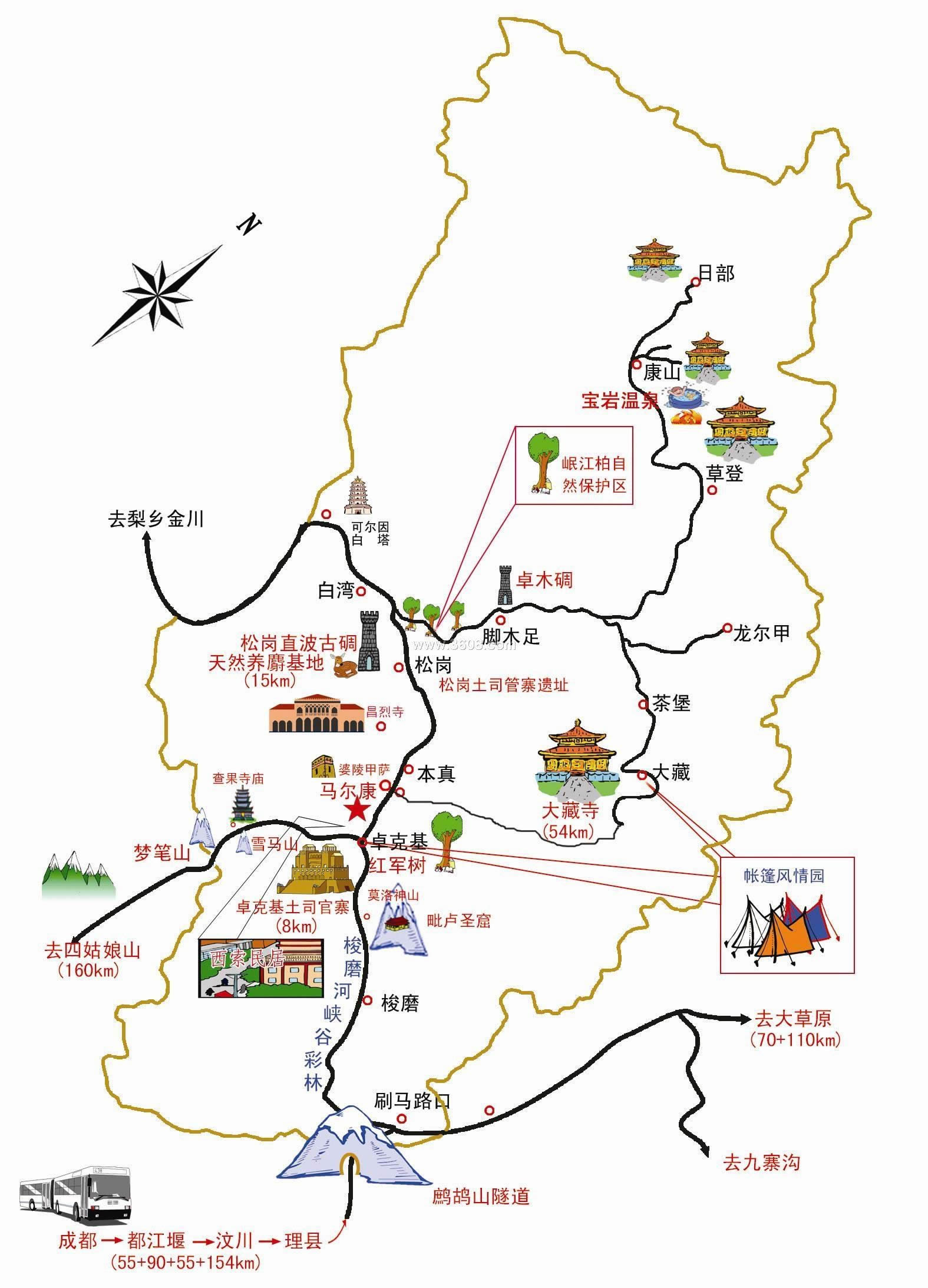 縣城駐地:馬爾康鎮(zhèn),距省會成都254公里。