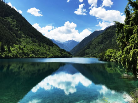 炎炎夏日,似火驕陽與粘濕汗水籠罩了整個大地,而此時的九寨溝卻截然不同。她掩映在整片整片蒼翠欲滴的濃陰之中,茂盛的林木守衛(wèi)著海子,歡快的流水梳理著樹枝與水草,一切都透著清爽。