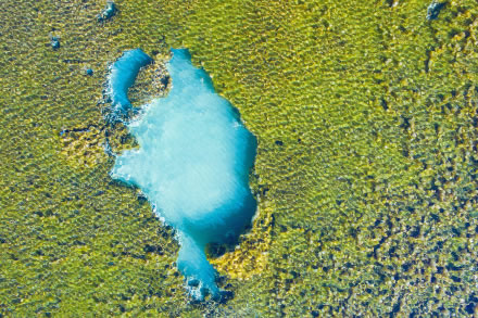 嫩芽悄然出現(xiàn),一抹抹新綠因重獲生機(jī)而生長得日益茂盛,春風(fēng)吹醒了封凍的海子,吹皺了一汪碧水,水色是幽靜的藍(lán)、清新的綠、淺淺的黃。無風(fēng)的晴日,山林樹色盡數(shù)倒映其中,呈現(xiàn)出對稱之美。