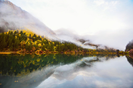 鏡海海拔2367米,長1155米、寬241米、深31米,是九寨溝第三大湖泊,因水面平靜如鏡而得名。