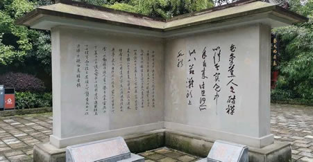 北宋著名詩人、書法家黃庭堅(jiān)謫居戎州時(shí),仿王羲之《蘭亭集序》“流觴曲水”之意,利用天然峽谷而建。池呈九曲形,立八石凳,引巖縫清泉為流,文人墨客列坐其間,可流杯飲酒,吟詩酬唱。此處巖壑清奇、古樹參天、意境清幽,為歷代文人雅士吟唱之所,是宜賓古八景之一。自宋迄今,詠贊之作繁多,或贊涪翁之高風(fēng),或頌筑池之勝績,或發(fā)思古之幽情,或懷時(shí)令之感慨,可謂霧集云屯,珠璣累累,頗富時(shí)代氣息,風(fēng)采紛呈。一些詩詞歌賦在事后被勒刻于流杯池附近的巖、壑、洞、谷。據(jù)1985年統(tǒng)計(jì),計(jì)有石刻題記128通,字跡基本完整的有64通,最早的紀(jì)年石刻為宋淳熙戊申(1189)年所刻。劉光弟、張大千、黃賓虹、張愛萍等人的字跡也躍然壁上。