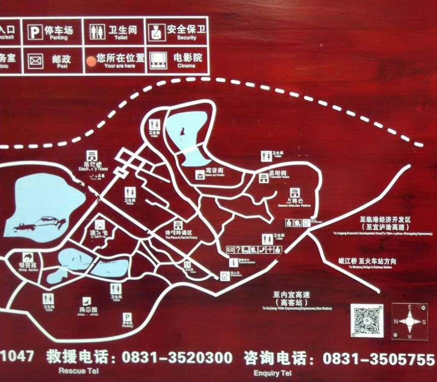 園內(nèi)著名景點(diǎn)流杯池是北宋大詩人、大書法家黃庭堅(jiān)根據(jù)王羲之《蘭亭集序》的意境,利用天然石谷而建,距今已有900多年歷史。是保存完好的宜賓古八景之一,也是現(xiàn)存最完好的酒文化發(fā)祥地之一。池取“曲水流觴”之意,吸引了古今不少名人雅客前來飲酒賦詩。