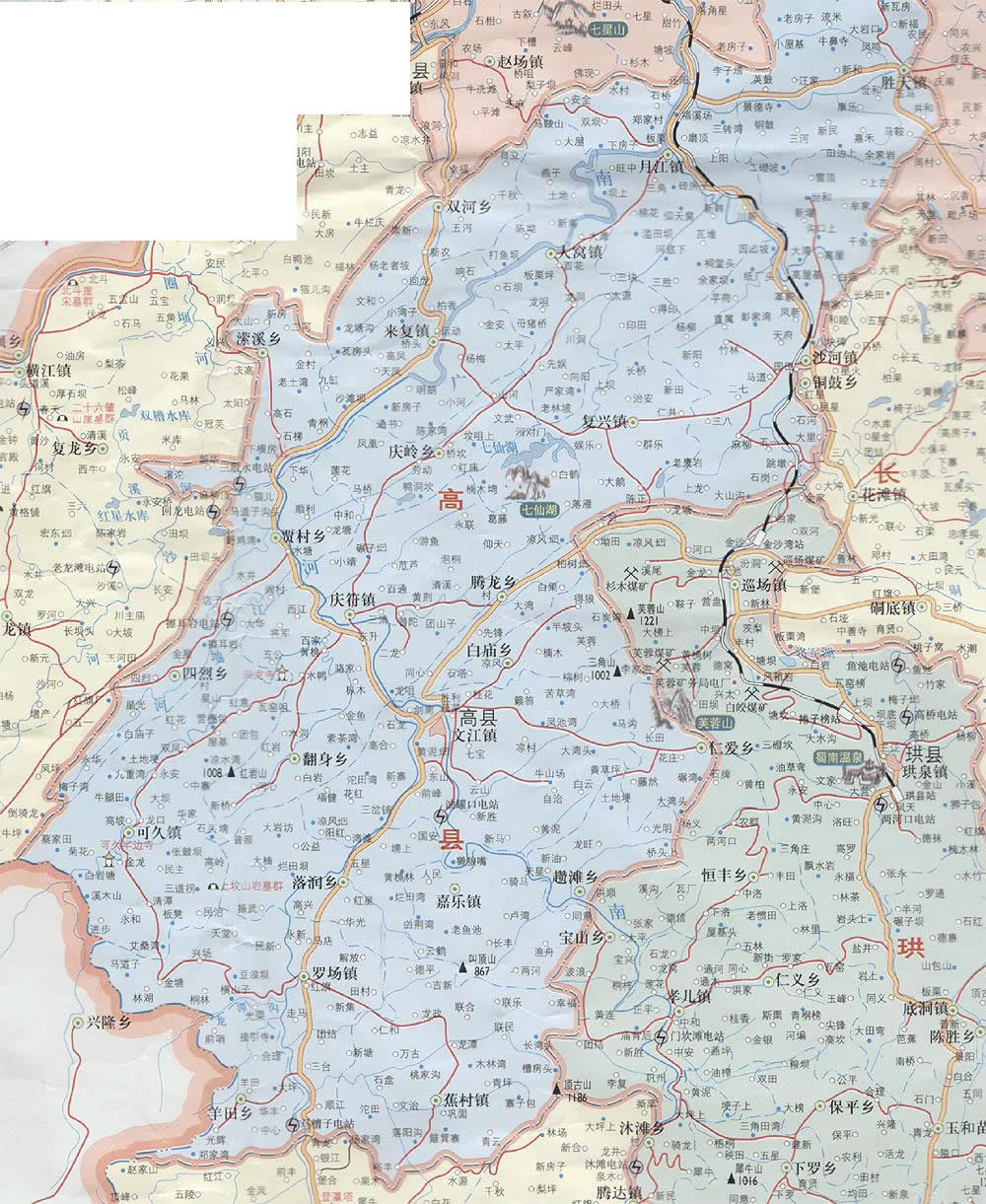 高縣轄12個(gè)鎮(zhèn)、7個(gè)鄉(xiāng):