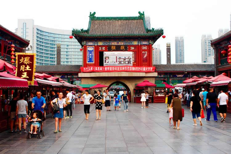 于1986年元旦建成開業(yè)。自古以來,這一帶就是天津最大的集市貿(mào)易和年貨市場,每年春季,天津規(guī)模盛大的皇會——娘娘誕辰吉日就在這里舉行,屆時表演高蹺、龍燈、旱船、獅子舞等。新建的古文化街內(nèi)除兩端牌樓及宮前戲樓為仿清大式建筑外,其余近百棟房屋皆為仿清民間小式古建筑。