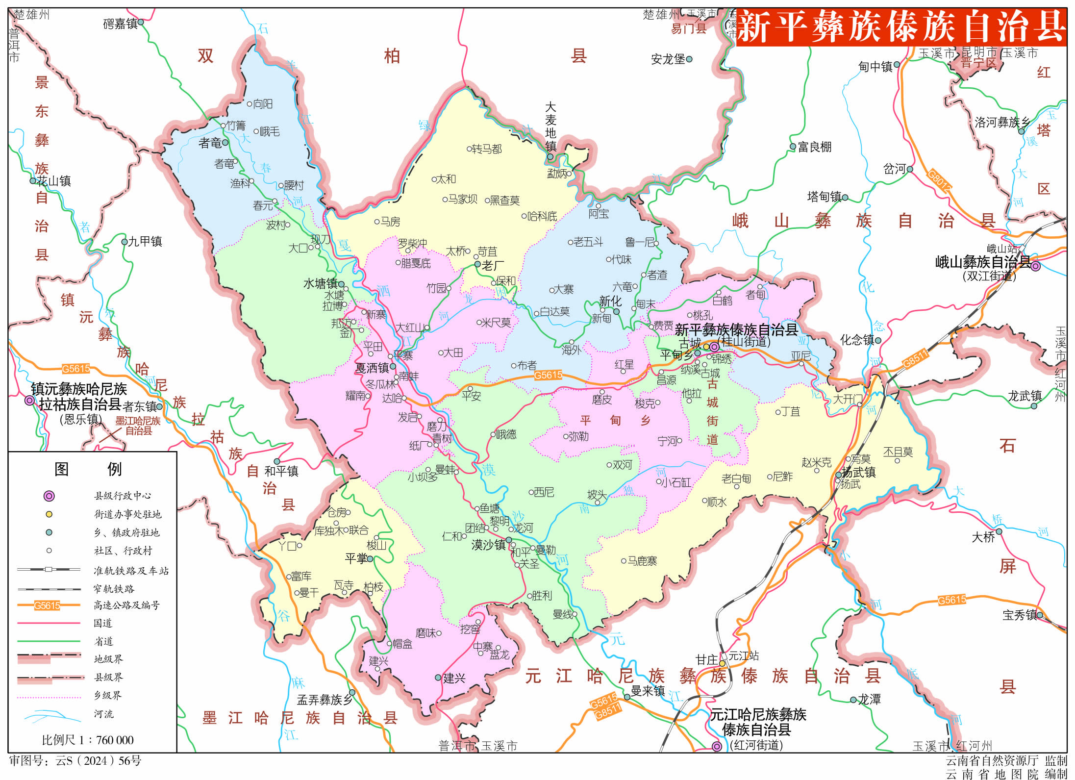 鄉(xiāng):平甸鄉(xiāng)、新化鄉(xiāng)、老廠鄉(xiāng)、建興鄉(xiāng)、平掌鄉(xiāng)、者竜鄉(xiāng)