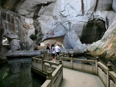雙門硐位于獨秀峰下、明代進士長嶼人李詩璲曰:“獨秀峰下翠作堆,幽樓如入小蓬萊。山中瑤草無人識,硐里桃花空自開!鼻宕L嶼詩人亦有一首五言絕句:“深山不受暑,莫如雙門硐。我來風相迎,我去風相送!边@二首詩是對雙門硐的絕好寫照。長嶼硐天無數(shù)硐窟景點均是清幽奇美,猶如仙境,石船溪、野人瀑、龍鱗瀑是保持著原來的自然風貌,景色極佳而且各具特色,引人入勝,是集青山秀水自然風光和宗教文化、石文化景觀于一體的觀光、休閑景區(qū)。
