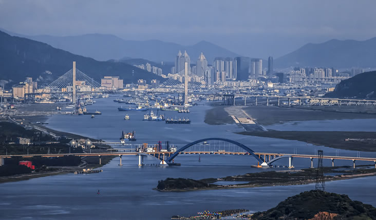 20世紀90年代開始,舟山市開始規(guī)劃大陸連島工程。舟山共建成跨海大橋20余座,這些大橋橫跨于各島之間,成為海島經(jīng)濟的生命線。1999年9月26日,舟山跨海大橋的第一座大橋岑港大橋正式動工,此后響礁門大橋、桃夭門大橋、西堠門大橋、金塘大橋相繼完工,舟山跨海大橋2009年通車,大陸連島一期、二期工程順利完成。此外東海大橋與2005年正式貫通,打通了舟山嵊泗縣到上海的通道,連接舟山本島和岱山島的舟岱大橋于2021年12月正式通車,六橫跨海大橋等正在建設中。